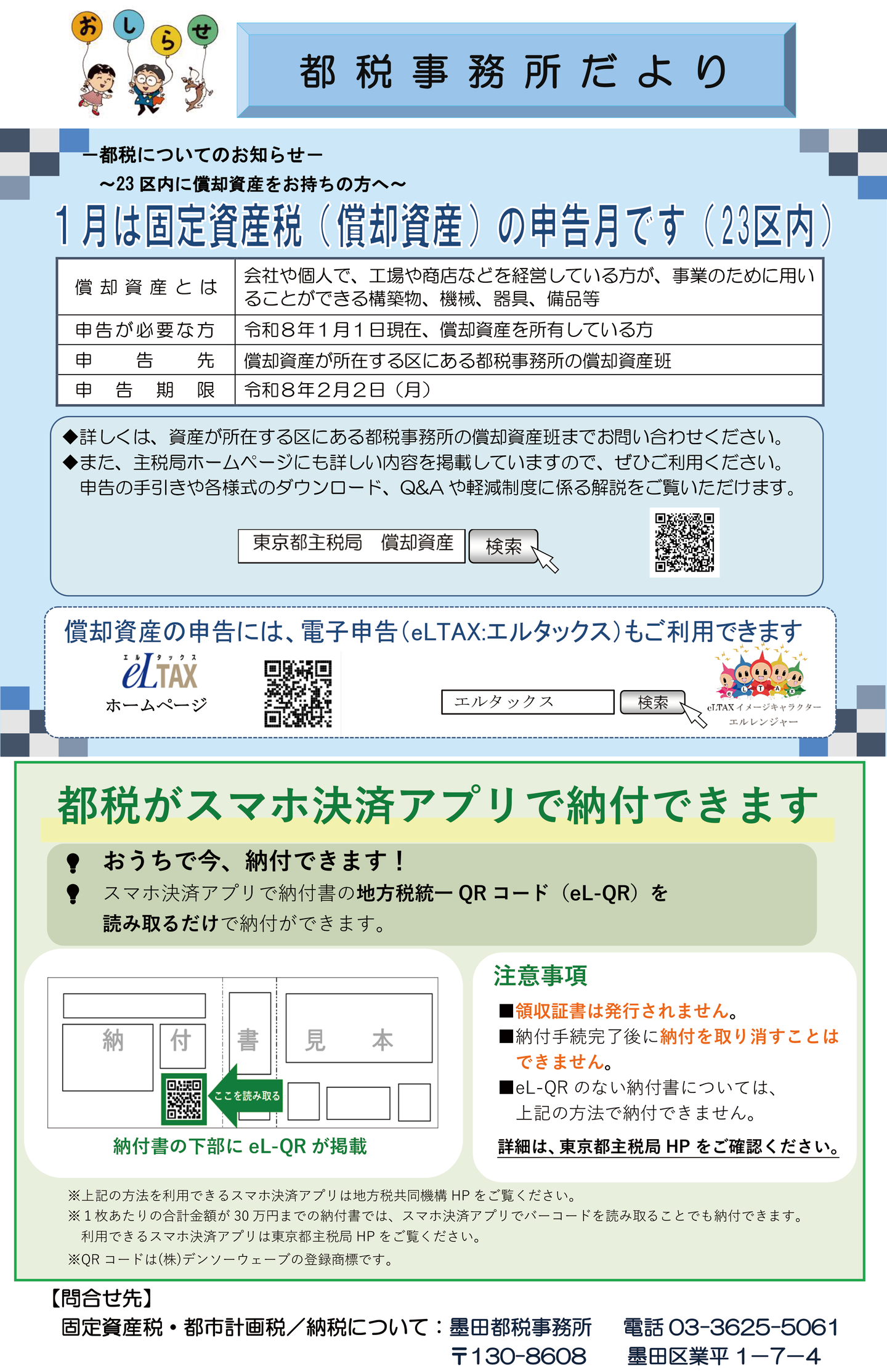 向島税務署だより 2026年 1月 向島税務署だよりpdf ダウンロード 都税事務務署だより 向島税務署だより 事業報告 墨東企談 向島法人会だより 各種委員会について 公開情報 リンク アクセス 〒 131-0032 東京都墨田区東向島2-8-5TEL : 03-3612-5515FAX : 03-3616 - 3536 ,68eefa73-92a8-4512-8a60-c095f3524957,,{"tempId":"gdefault","gmapWidth":"100","gmapWidthUnit":"%","gmapHeight":"380","gmapHeightUnit":"px","gmapZoomLevel":17,"gmapScrollWheel":true}